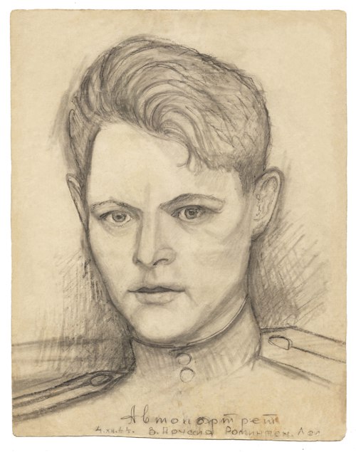 Предлагаем Вашему вниманию выставку его рисунков сделанных на совершенно разных бумажных материалах, последний представленный рисунок выполнен на обратной стороне немецкой топографической карте военного времени окрестностей города Вольсбурга в Восточной Прусии.