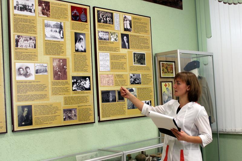 Экспонаты, рассказывающие о работе и подвигах медсестер во время Великой Отечественной войны, развитии медицины, помогали собирать жители города, общественные организации, поисковики, сестры милосердия, работающие в храме при горбольнице, музей в Свято-Димитриевском училище сестер милосердия в Москве.