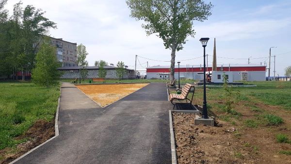 По нацпроекту в поселке Соколовый преображается и спортивная площадка. Работы уже выполнены на 80%: проложены дорожки, установлены тротуары и металлические ограждения. Планируется уложить эпоксидно-каучуковое покрытие и разместить на ней спортивные тренажёры.